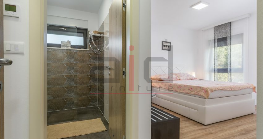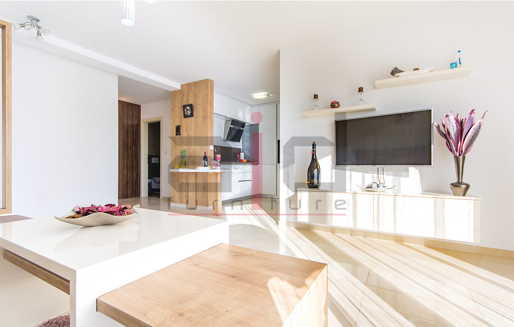Stilski namještaj u kombinaciji visokog sjaja i drvnog dekora, ovaj objekt su učinili traženim apartmanom za ljetovanje. Ugodan prostor pruža turistima osjećaj opuštenosti, a tome pridonose prozračne kombinacije boja i kvalitetan namještaj.